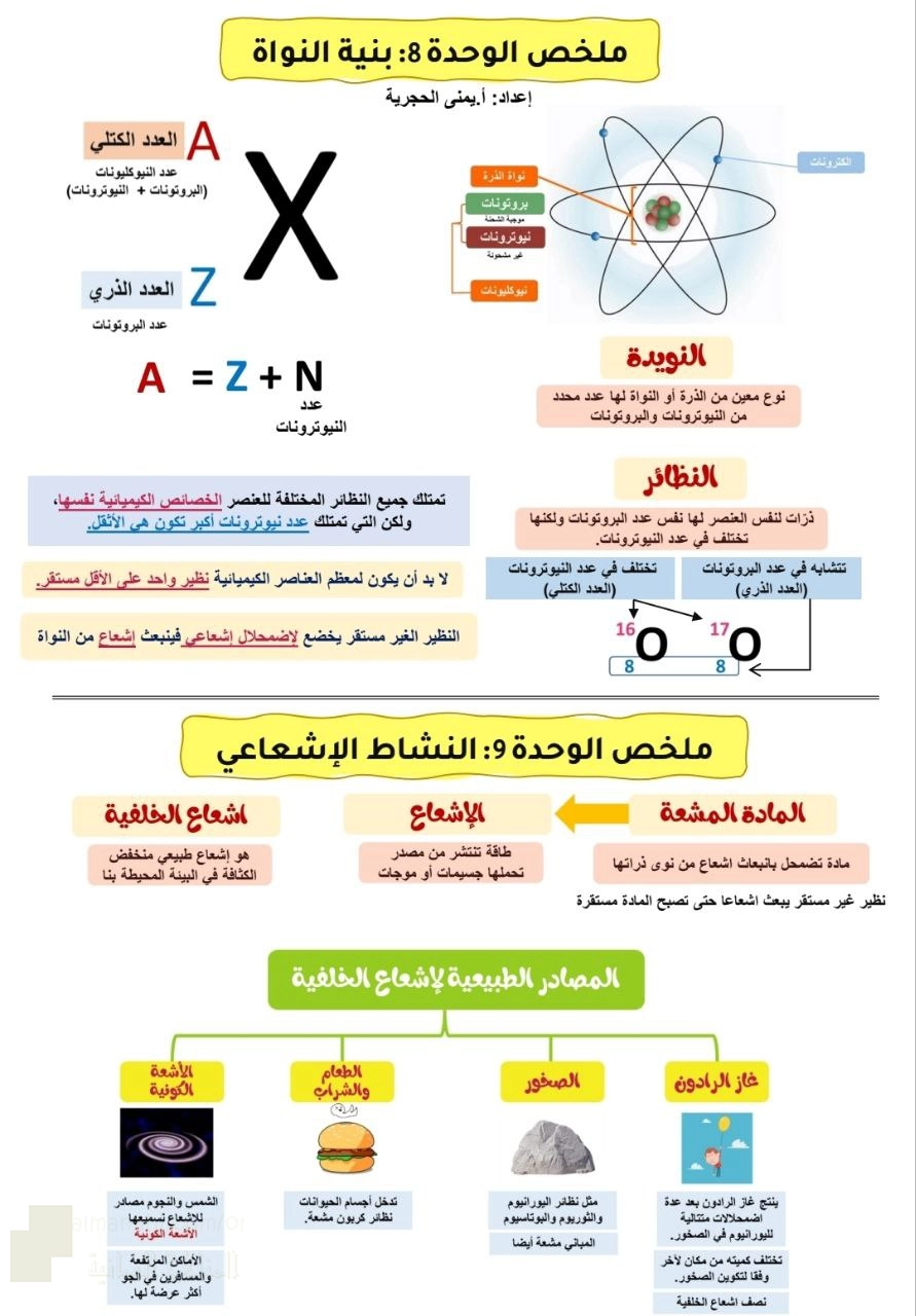 ملخص مختصر للوحدتين الثامنة بنية النواة والتاسعة النشاط الإشعاعي - إعداد: يمنى الحجرية