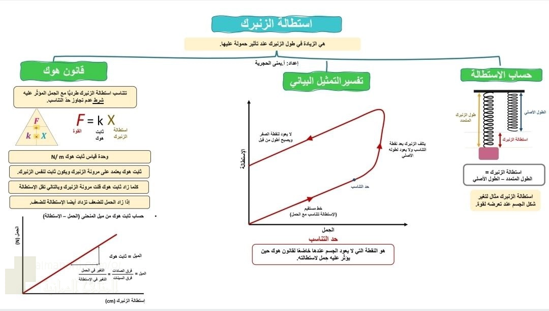 ملخص مبسط لدرس استطالة الزنبرك - إعداد: يمنى الحجرية