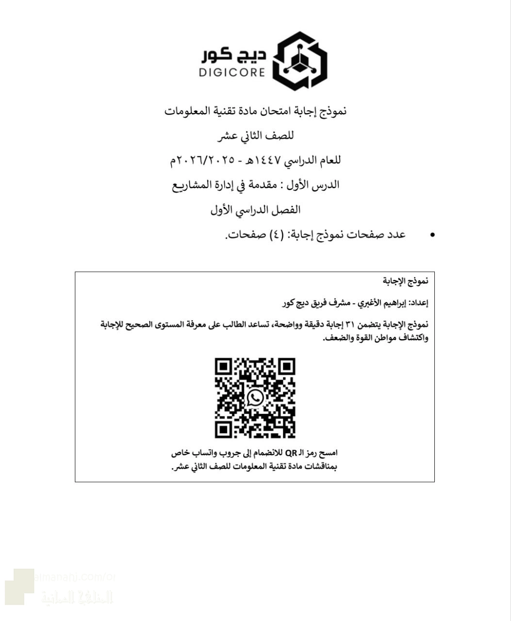2. الصف الثاني عشر, حاسوب, نموذج إجابة الاختبار التدريبي لمادة تقنية المعلومات