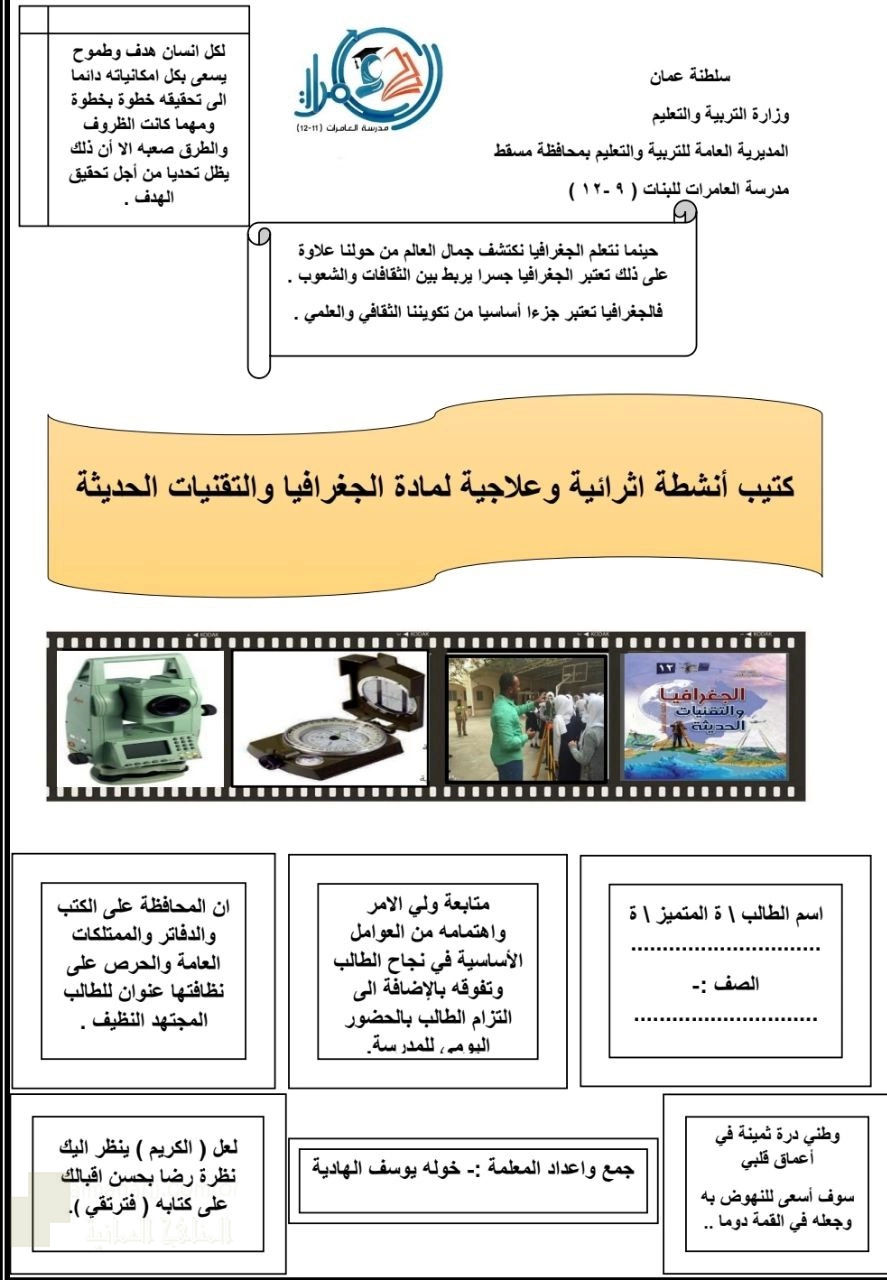 5. الصف الثاني عشر, جغرافيا, كتيب أنشطة إثرائية وعلاجية