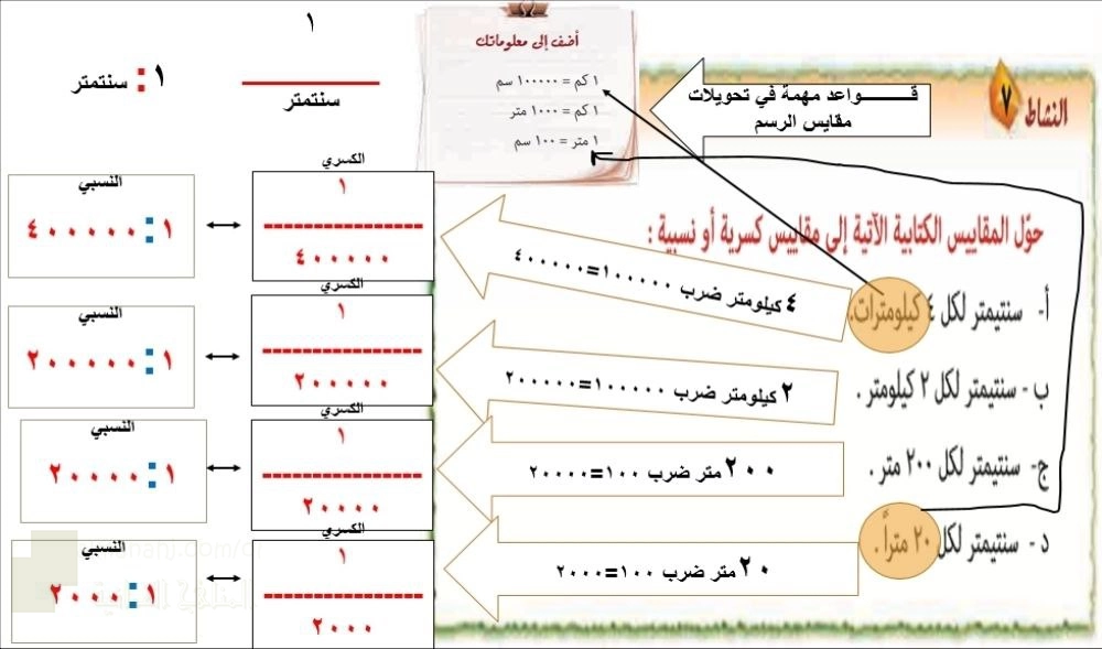 6. الصف الثاني عشر, جغرافيا, قواعد مهمة في تحويلات مقاييس الرسم