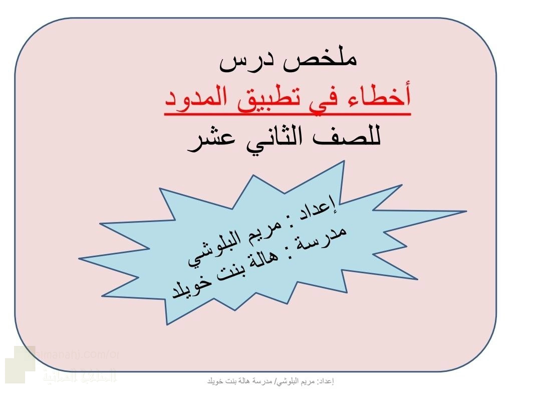 1. الصف الثاني عشر, تربية اسلامية, ملخص وشرح درس أخطاء في تطبيق المدود