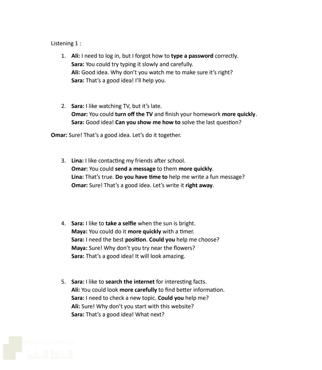 4. الصف السادس, لغة انجليزية, نصوص استماع للامتحان التجريبي