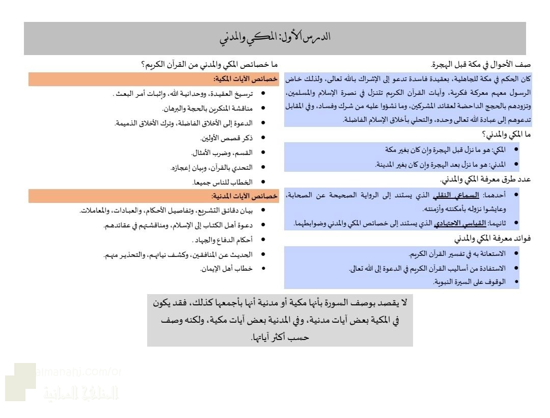 2. الصف التاسع, تربية اسلامية, أسئلة اختبارية على الدرس الأول المكي والمدني