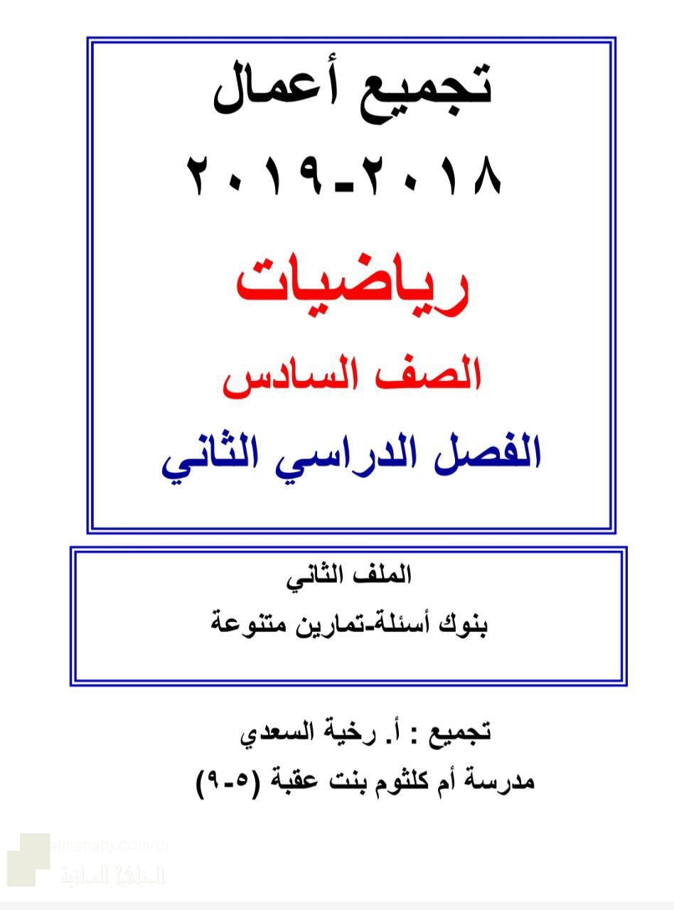 6. الصف السادس, رياضيات, دليل الطالب تجميع أعمال شاملة للمنهج ملف ثاني