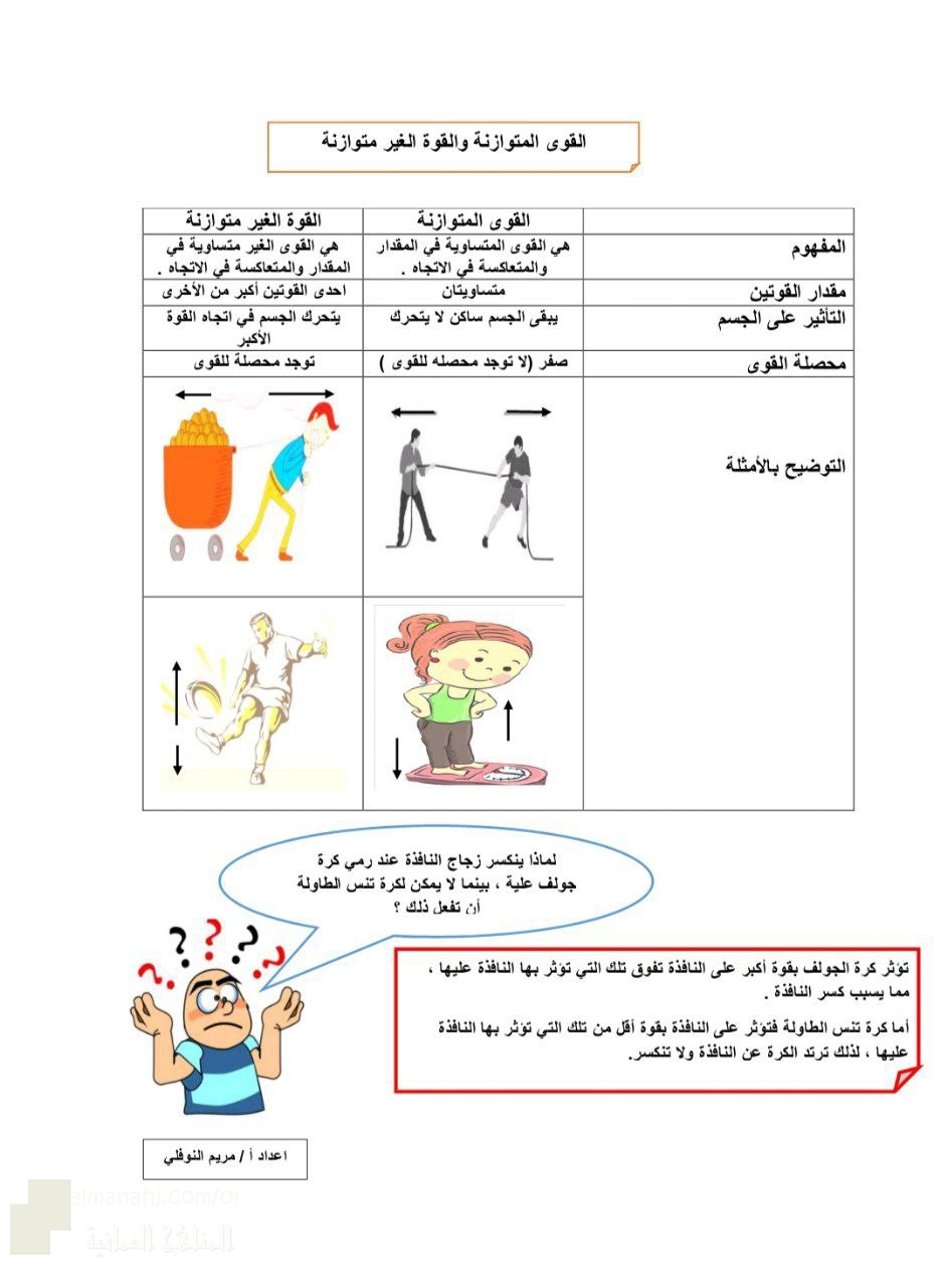 10. الصف السادس, علوم, شرح مفهوم القوى المتوازنة والقوى غير المتوازنة وتأثير كل منها على حركة الأجسام