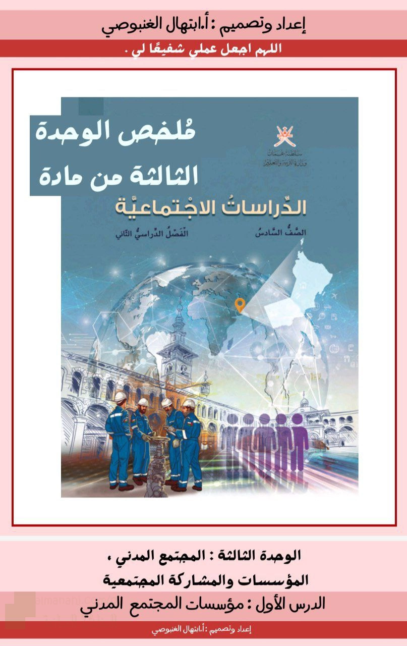 ملخص الوحدة الثالثة مؤسسات المجتمع المدني والمشاركة المجتمعية في سلطنة عمان - إعداد: ابتهال الغنبوصي