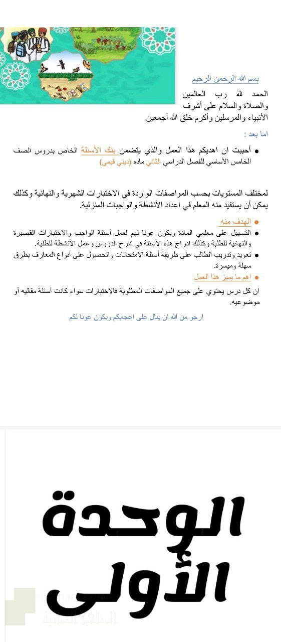 13. الصف الخامس, تربية اسلامية, حلول بنك أسئلة شامل للوحدات الأولى والثانية والثالثة
