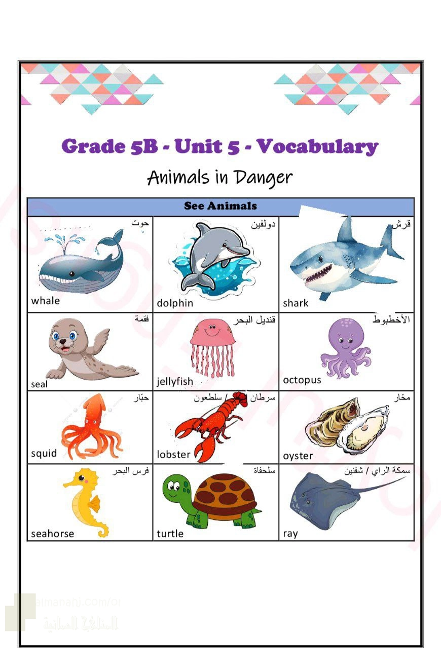 12. الصف الخامس, لغة انجليزية, مفردات الكلمات مع الصور من الحيوانات المهددة إلى الحياة البرية