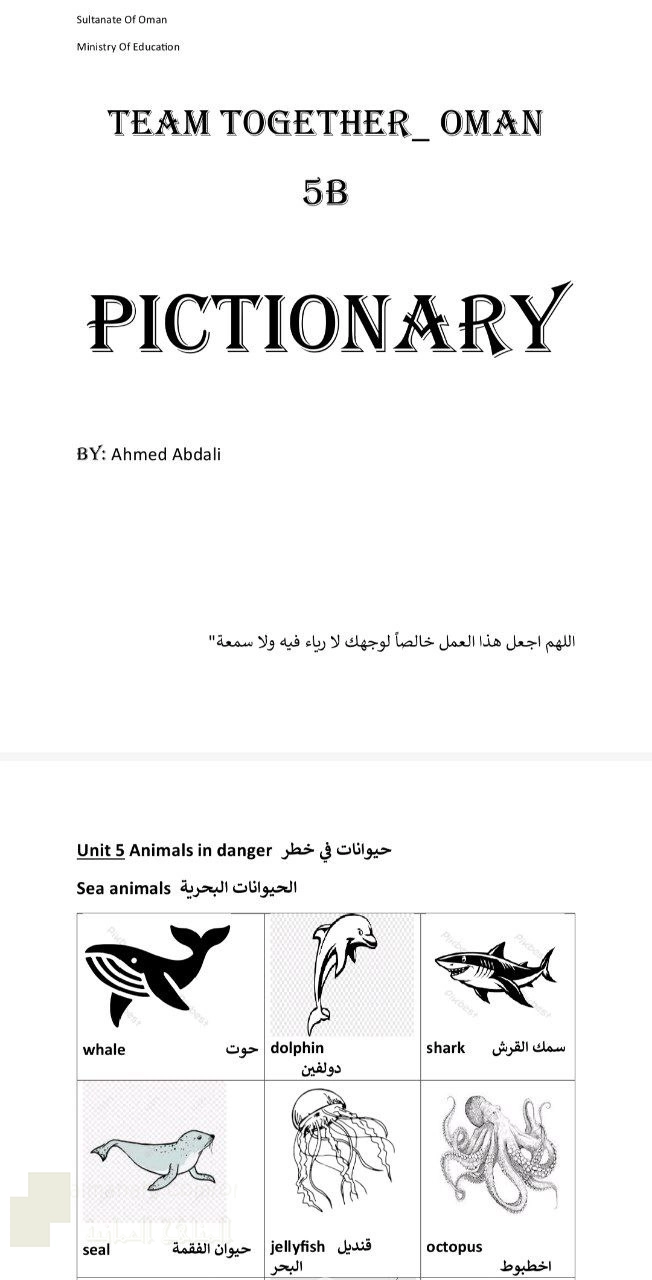 11. الصف الخامس, لغة انجليزية, قاموس مصور لمفردات كتاب Team Together