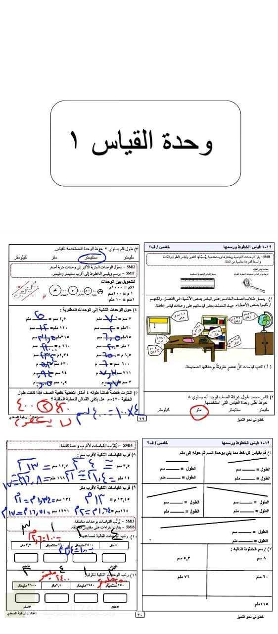 5. الصف الخامس, علوم, حلول درس وحدة القياس خطواتي نحو التميز