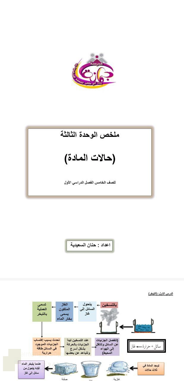 ملخص الوحدة الثالثة حالات المادة - إعداد: حنان السعيدية