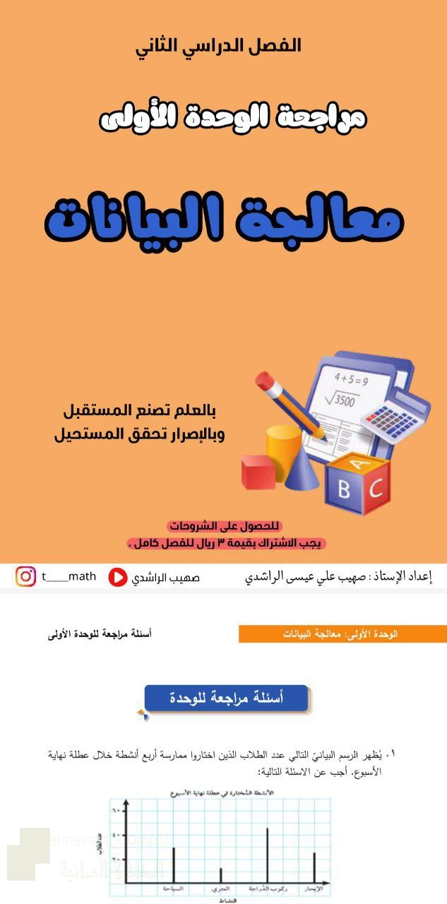 2. الصف الخامس, رياضيات, مراجعة الوحدة الأولى معالجة البيانات