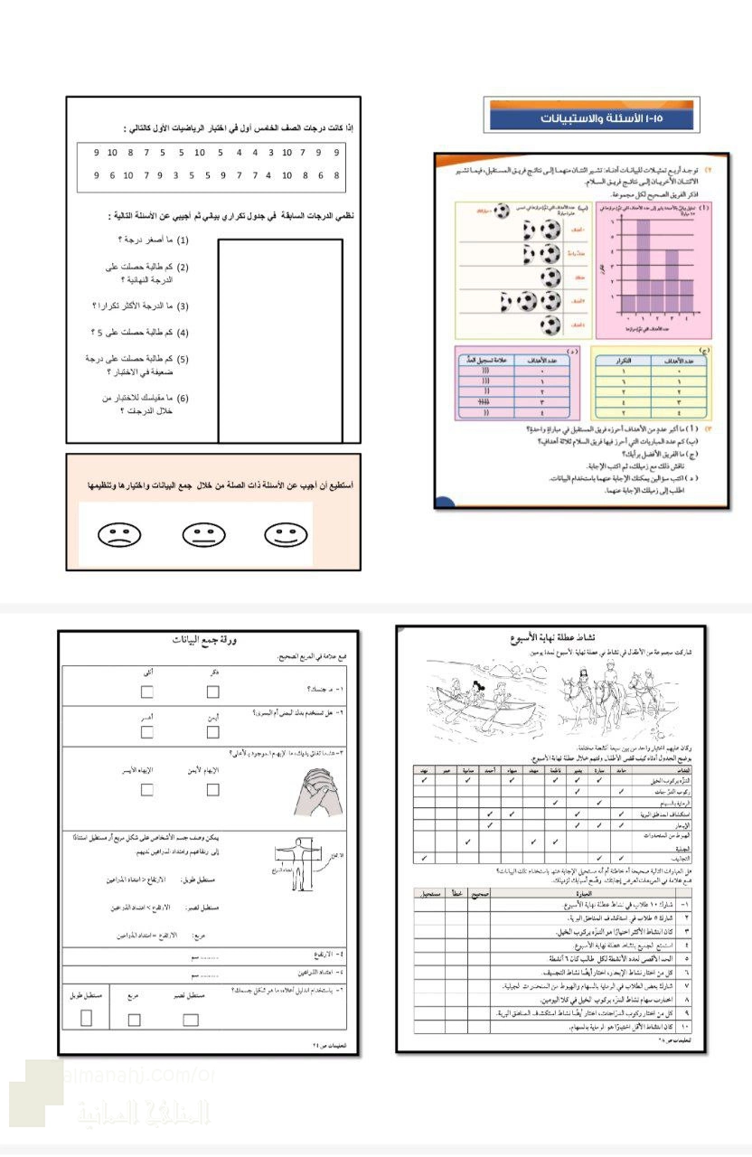 11. الصف الخامس, رياضيات, الوحدة الأولى معالجة البيانات