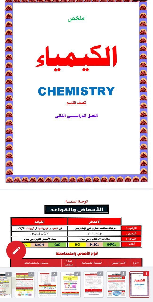 6. الصف التاسع, كيمياء, ملخص شامل في الكيمياء من الأحماض والقواعد إلى التحليل الكيميائي والتلوث البيئي