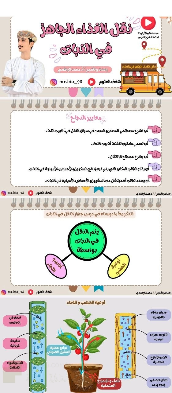 6. الصف التاسع, أحياء, ملخص درس جهاز النقل في النبات