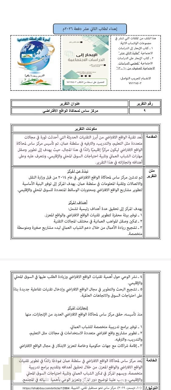 تقرير عن مركز سادس لمحاكات الواقع الإفتراضي, محمد اسماعيل عبدالله البلوشي, الصف الثاني عشر, هذا وطني, الفصل الثاني, 2025/2026 - المناهج العمانية