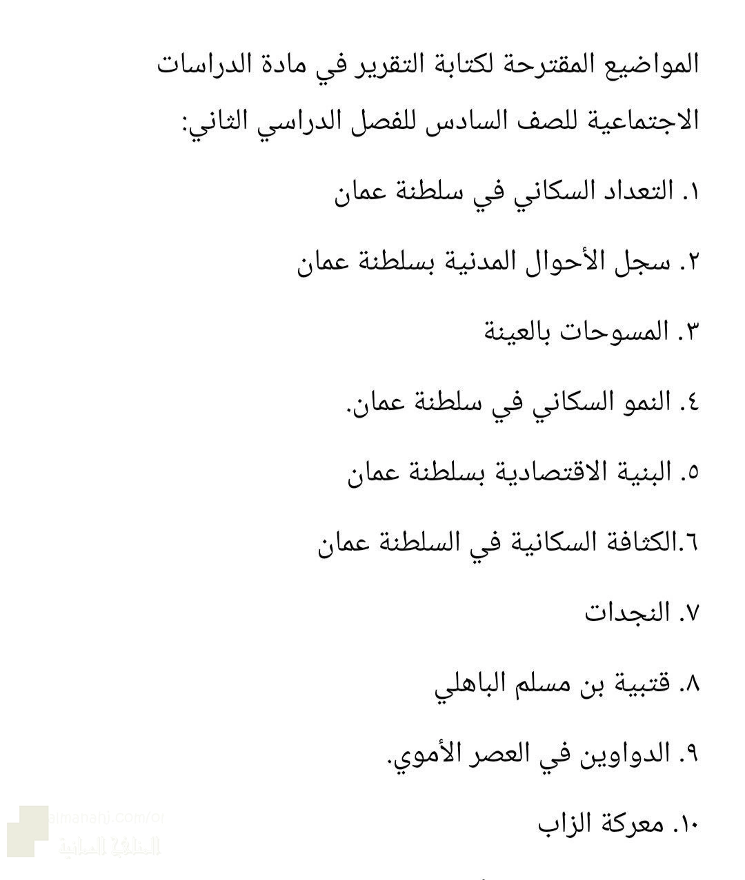 10. الصف السادس, اجتماعيات, المواضيع المقترحة لكتابة التقرير ف2