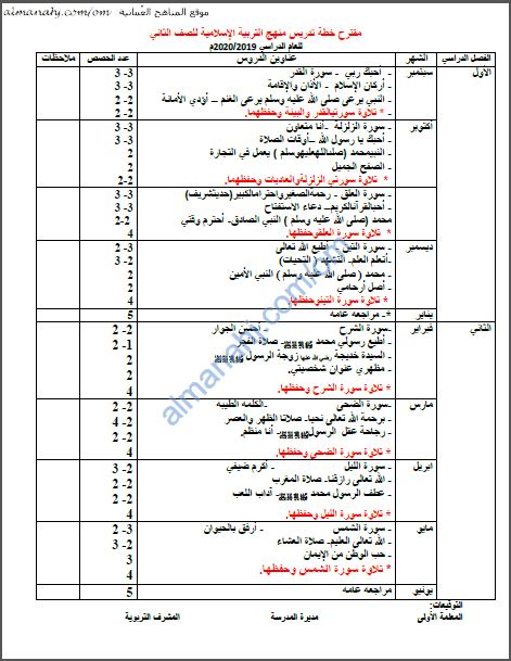 تحتوي الصورة المرفقة أدناه على مقترح خطة تدريس في مادة التربية الاسلامية في الصف الثاني يحتوي توزيع الموضوعات والأنشطة المقررة.