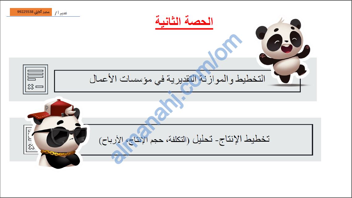ملخص شرح وتدريبات في التخطيط والموازنة التقديرية في مؤسسات الأعمال وتخطيط الإنتاج (الحصة الثانية), محمد الحارثي, الصف الثاني عشر, رياضيات تطبيقية, الفصل الأول, 2020\2021 - المناهج العمانية