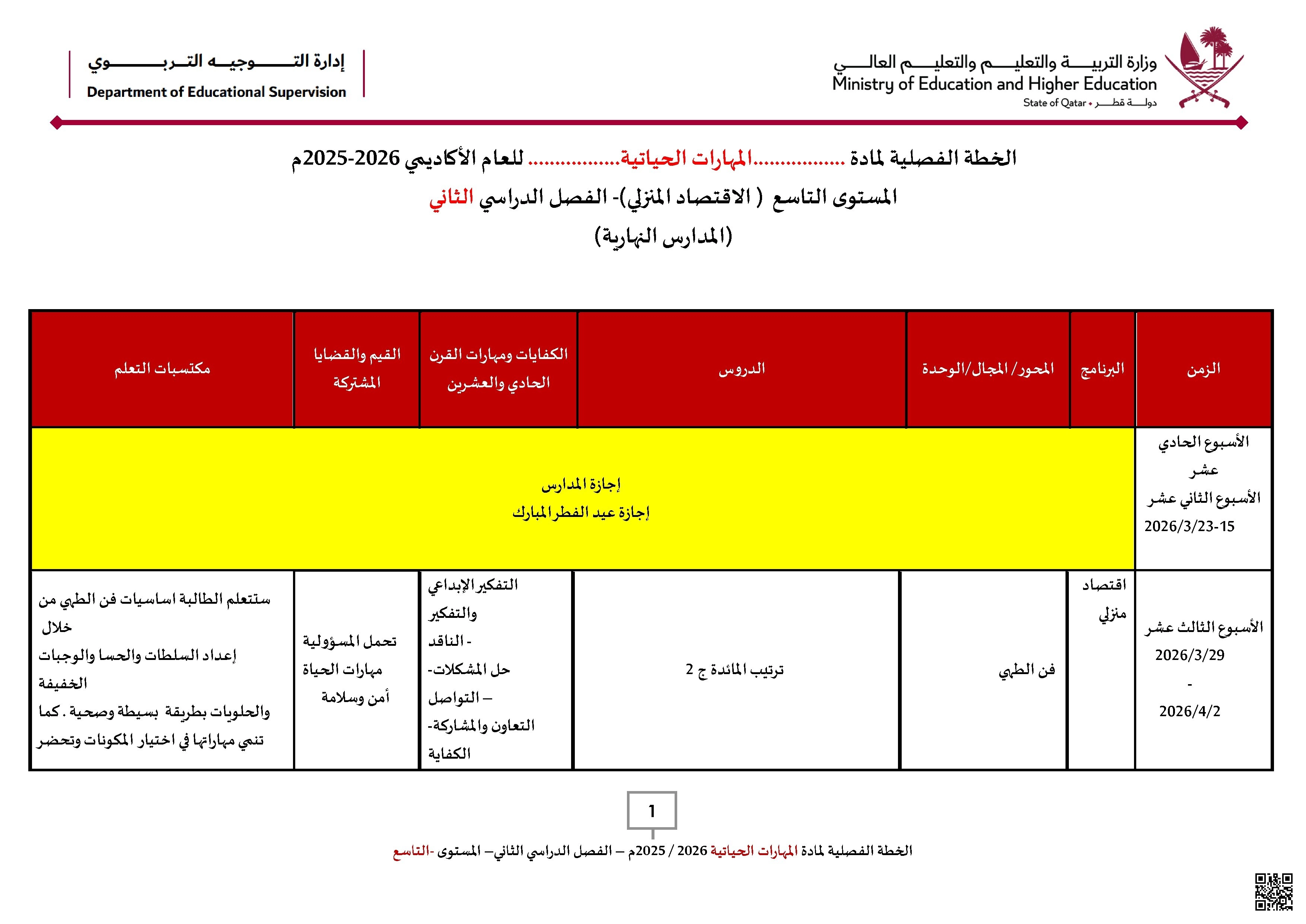 الخطة الفصلية المعدلة بنين للفصل الثاني اخر تحديث 9 أبريل