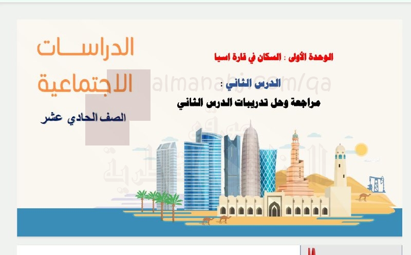 معلومات الملف: مراجعة و حل تدريبات الدرس الثاني السكان في قارة آسيا من الوحدة الأولى قارة آسيا و تشمل إجابات لأسئلة متنوعة شاملة للدرس | ||