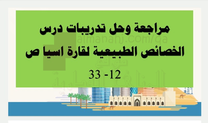 تم إيجاد الملف: مراجعة وحل تدريبات درس الخصائص الطبيعية لقارة أسيا من الوحدة الأولى