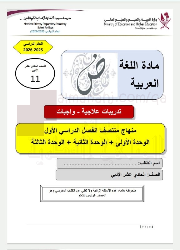 أهلاً بكم جميعاً طلاباً ومدرسين وأهالي طلبة ومهتمين، في قسم دولة قطر ، نحن الآن في الفصل الأول من العام الدراسي 2025/2026 وتاريخ اليوم 2025/10/14 م | |