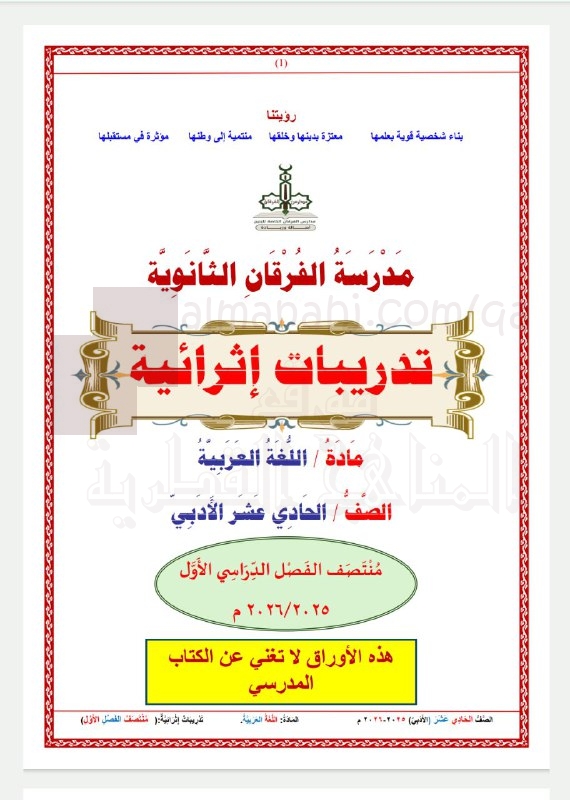 معلومات الملف: تدريبات إثرائية شاملة : لاختبار منتصف الفصل الدراسي الأول للعام 2025 - 2026 من مدرسة : الفرقان الثانوية غير مجابة | ||
