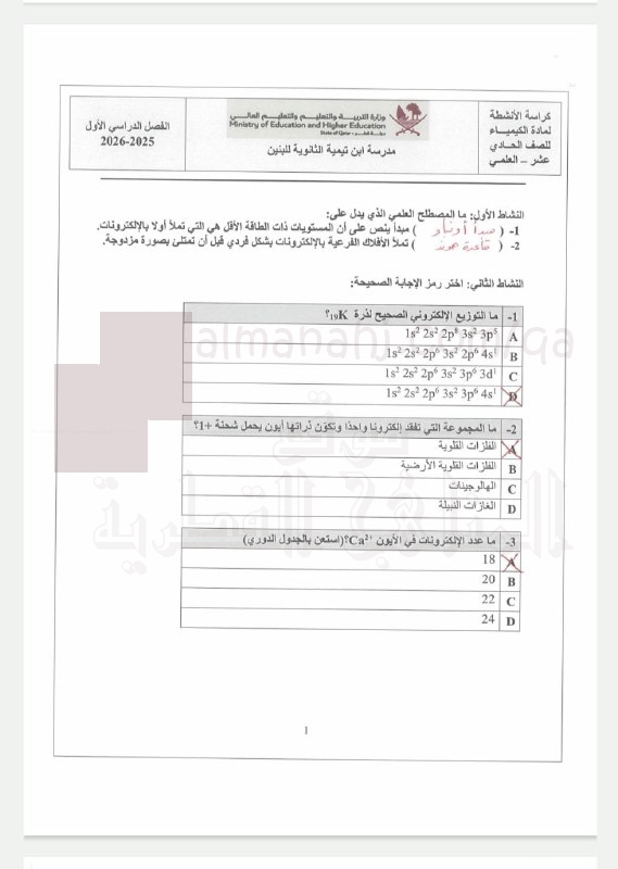 كيمياء | رياضيات | علوم | فيزياء | لغة عربية | علوم الحاسب | الامتحانات |