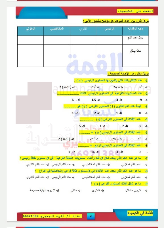 معلومات الملف: مذكرة مراجعة شاملة غير مجابة من سلسلة القمة في الكيمياء