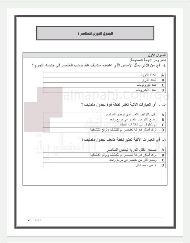 معلومات الملف: مراجعة شاملة غير مجابة دروس الوحدة الأولى الدورية في خصائص العناصر و تشمل الدروس التالية : الجدول الدوري للعناصر تدرج الخواص الدورية للعناصر النشاط الكيميائي في العناصر | ||