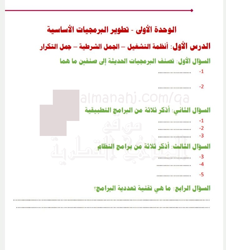 يتم الآن تحضير الملف (أوراق عمل إثرائية منتصف الفصل الوحدة الأولى تطوير البرمجيات الأساسية) من أجل التحميل
