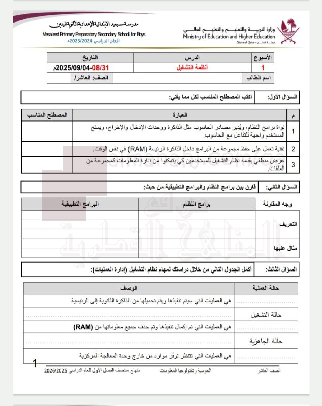 أهلاً بكم جميعاً طلاباً ومدرسين وأهالي طلبة ومهتمين، في قسم دولة قطر ، نحن الآن في الفصل الأول من العام الدراسي 2025/2026 وتاريخ اليوم 2025/10/15 م | |
