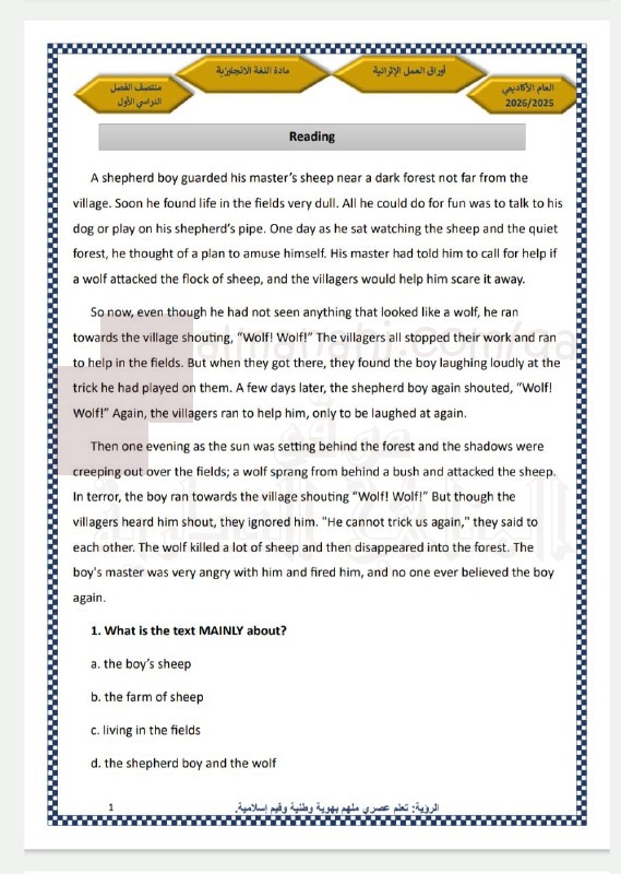 أنت هنا: موقع المناهج ⇦ المناهج القطرية ⇦ المستوى العاشر ⇦ لغة انجليزية ⇦ الفصل الأول ⇦ أوراق عمل |