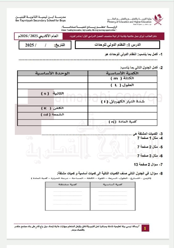 | أنت هنا: موقع المناهج ⇦ المناهج القطرية ⇦ المستوى العاشر ⇦ فيزياء ⇦ الفصل الأول ⇦ أوراق عمل |