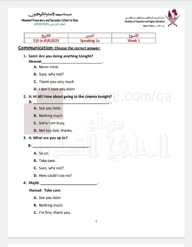 أهلاً بكم جميعاً طلاباً ومدرسين وأهالي طلبة ومهتمين، في قسم دولة قطر ، نحن الآن في الفصل الأول من العام الدراسي 2025/2026 وتاريخ اليوم 2025/10/20 م | |