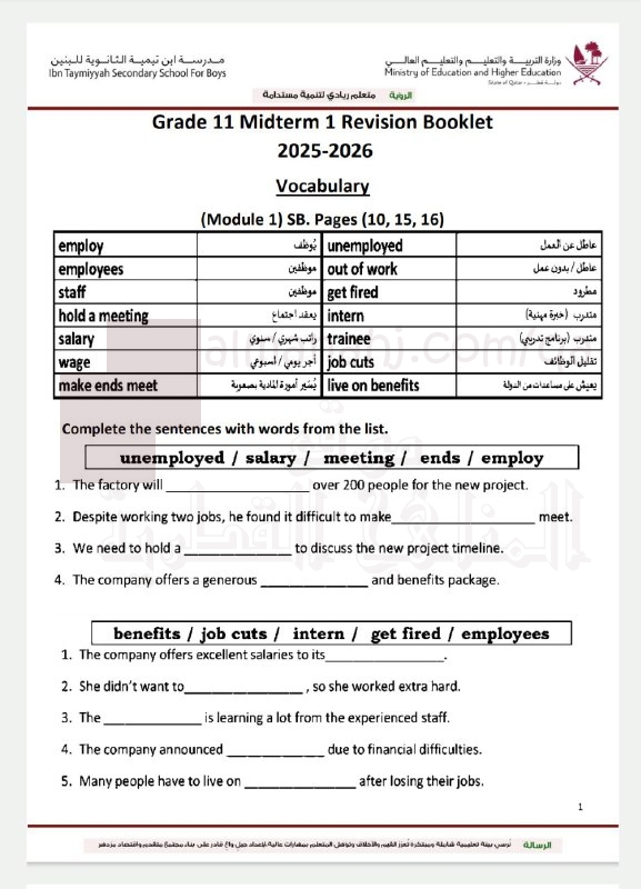 كتيب مراجعة شاملة لاختبار منتصف الفصل من مدرسة ابن تيمية - إعداد: مدرسة ابن تيمية | ||