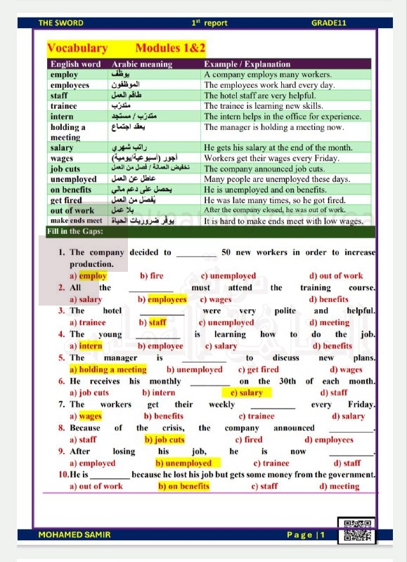 | مراجعة شاملة لاختبار منتصف الفصل مع الإجابات - إعداد: محمد سمير | ||