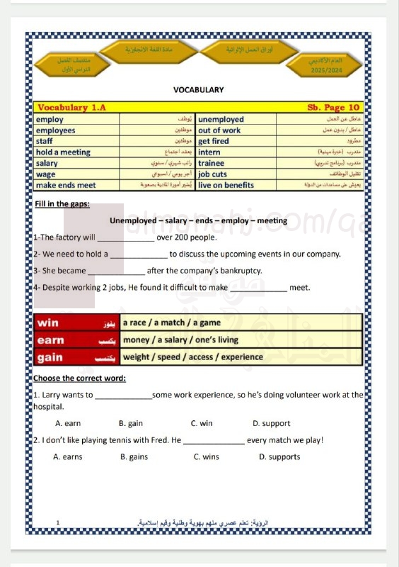 أنت هنا: موقع المناهج ⇦ المناهج القطرية ⇦ المستوى الحادي عشر ⇦ لغة انجليزية ⇦ الفصل الأول ⇦ أوراق عمل |