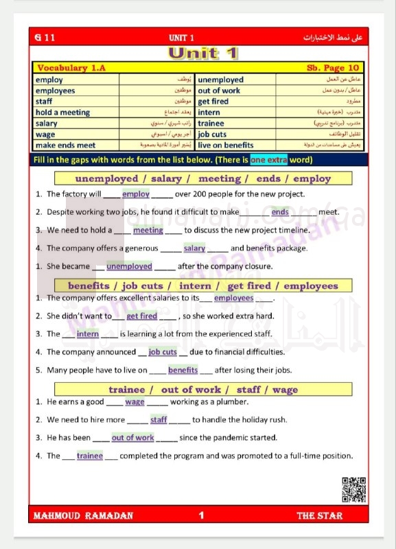 أنت هنا: موقع المناهج ⇦ المناهج القطرية ⇦ المستوى الحادي عشر ⇦ لغة انجليزية ⇦ الفصل الأول ⇦ أوراق عمل |