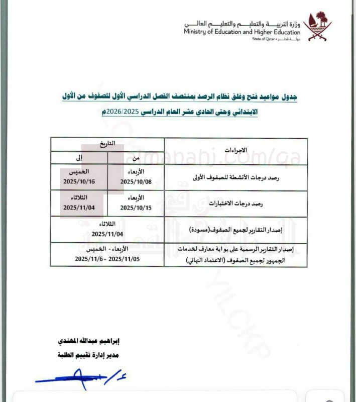 جدول مواعيد الرصد وإصدار التقارير المدرسية لاختبار منتصف الفصل, أخبار, الامتحانات, الفصل الأول, 2025-2026 | ||