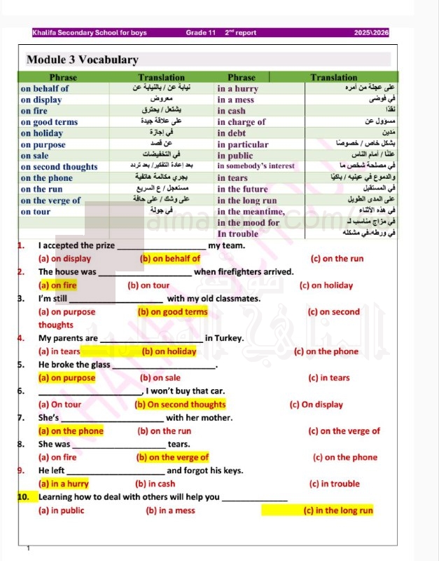 | أنت هنا: موقع المناهج ⇦ المناهج القطرية ⇦ الصف الحادي عشر ⇦ لغة انجليزية ⇦ الفصل الأول ⇦ حلول |