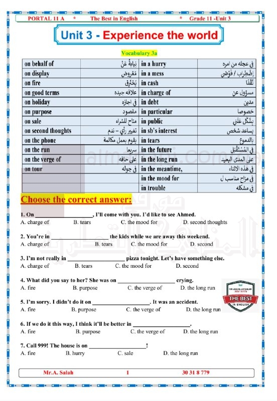 | أنت هنا: موقع المناهج ⇦ المناهج القطرية ⇦ الصف الحادي عشر ⇦ لغة انجليزية ⇦ الفصل الأول ⇦ ملفات متنوعة |