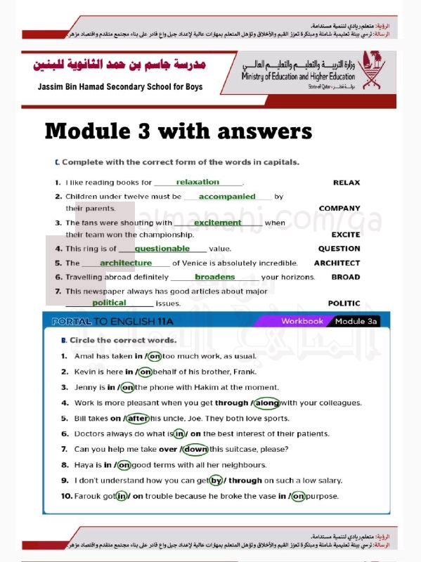 | أنت هنا: موقع المناهج ⇦ المناهج القطرية ⇦ الصف الحادي عشر ⇦ لغة انجليزية ⇦ الفصل الأول ⇦ حلول |