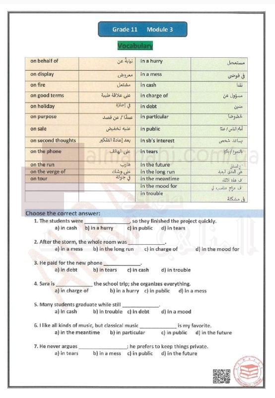 | أنت هنا: موقع المناهج ⇦ المناهج القطرية ⇦ الصف الحادي عشر ⇦ لغة انجليزية ⇦ الفصل الأول ⇦ أوراق عمل |