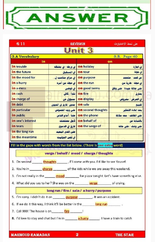 | أوراق عمل إثرائية شاملة الوحدات الثلاث مجابة - إعداد: محمود رمضان | |||