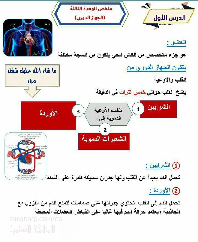 | أوراق عمل ومراجعة الوحدة الثالثة الجهاز الدوري للدكتور رجب أبو البراء - إعداد: رجب أبو البراء | ||