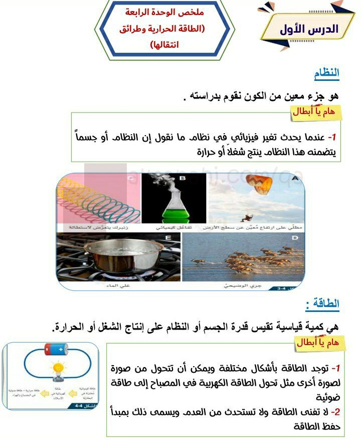 تم إيجاد الملف: أوراق عمل الوحدة الرابعة الطاقة الحرارية وطرائق انتقالها للدكتور رجب أبو البراء