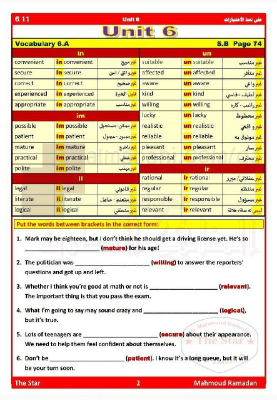 | مراجعة شاملة مع تدريبات غير مجابة في الوحدتين السادسة والسابعة للأستاذ محمود رمضان - إعداد: محمود رمضان | ||